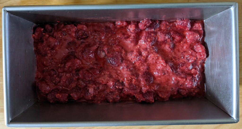 - 5 cups raspberries (three pints less one cup taken for snacking)
