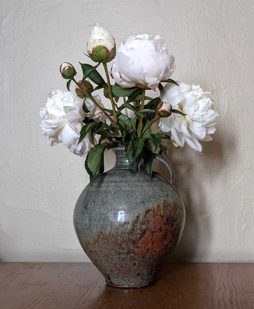 The unbloomed peonies from the farmers market bouquet remained unbloomed, despite trying a few tricks I consulted the Internet for. I was disappointed, but the leftover stems were started to rot, so I had to toss them.
