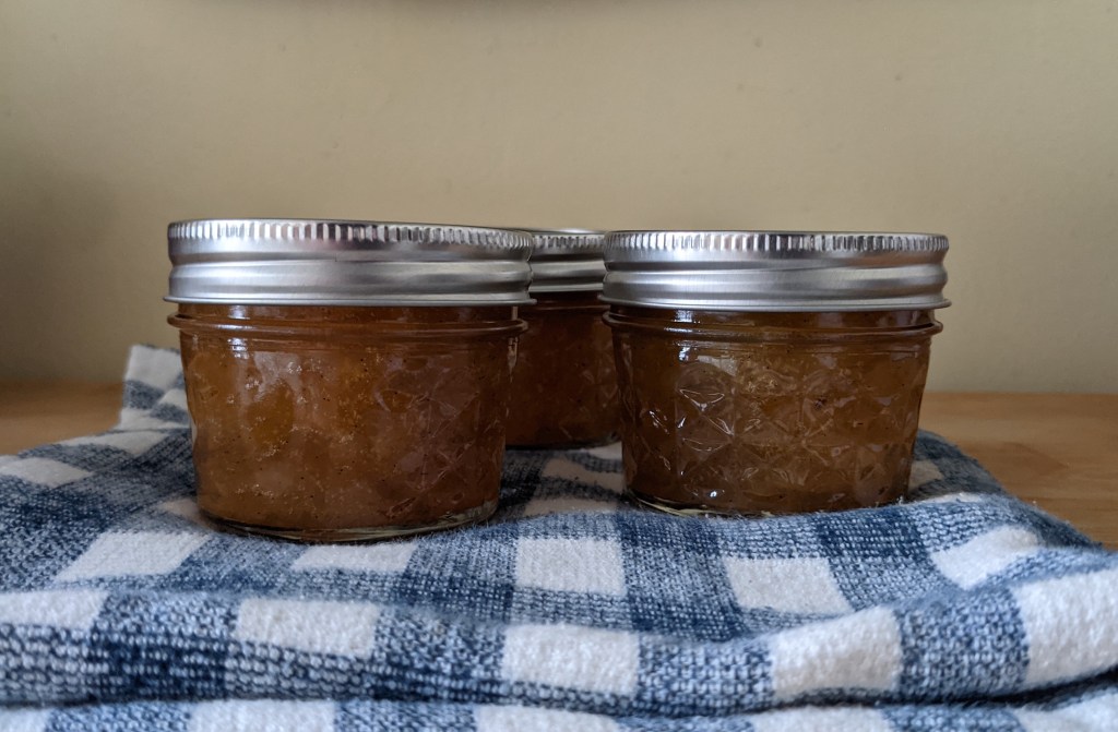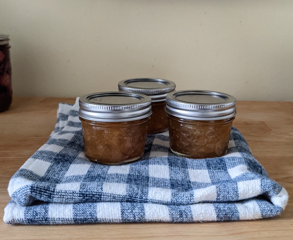 It made exactly 3 jars of jam, with only scrapes from the side of the pot for tasting. Perhaps I made it a little too lemony for how tart the plums were, but the texture is ideal: plum chunks in sweet syrup. I can’t wait to open a jar. I know it will pair beautifully with a lightly toasted slice of gingerbread this fall.