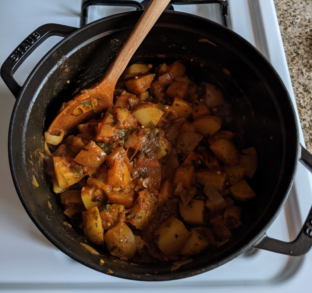 It did burn a bit on the bottom, so I probably should have stirred it up a few times while it was simmering. It tastes incredible, so I don’t think I made any mistakes. If anything, I should have added more salt when seasoning, or to the water I was boiling the potatoes in.