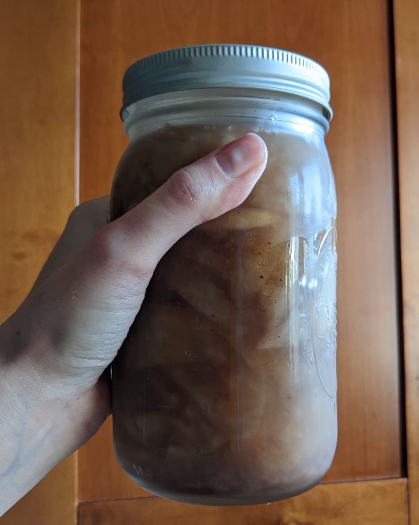 - Pear jam. A half-pint and a 4oz jar. It’s so good, I’ve been afraid to finish it. Now I need to.