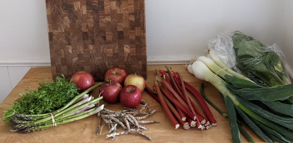The CSA is already off to a great start. So much rhubarb! And black beans, which I don’t think I made last year because I let them go bad. What an ideal mix of late spring produce.