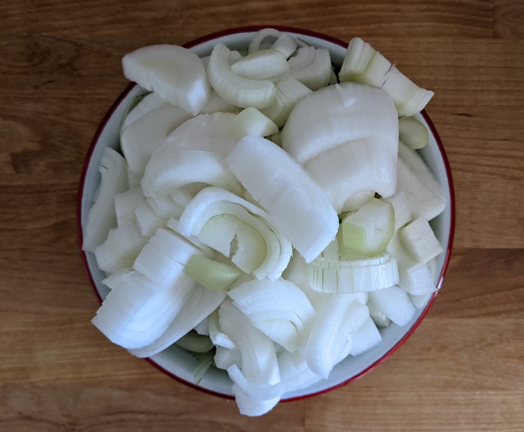 My white whale! A thing I have always wanted to cook since going vegan forever ago, but never have purely out of fear of difficulty + fucking it up (same with kneaded bread, which I did fuck up and haven’t tried again). Not to mention fear of being immobilized by onion fumes.