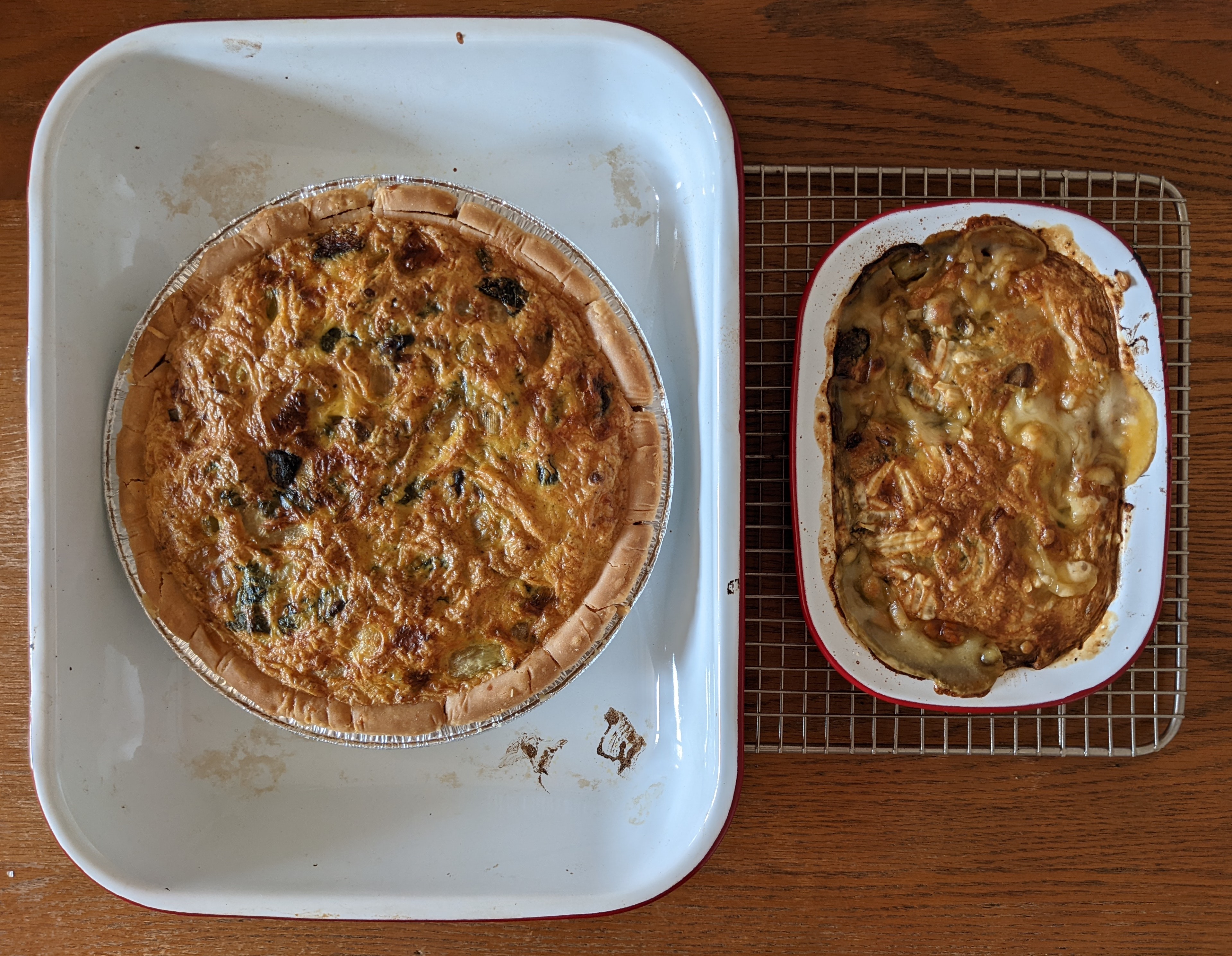 - finished quiches (the small one with cheese added to leftover sautéed greens and bottled “egg”)