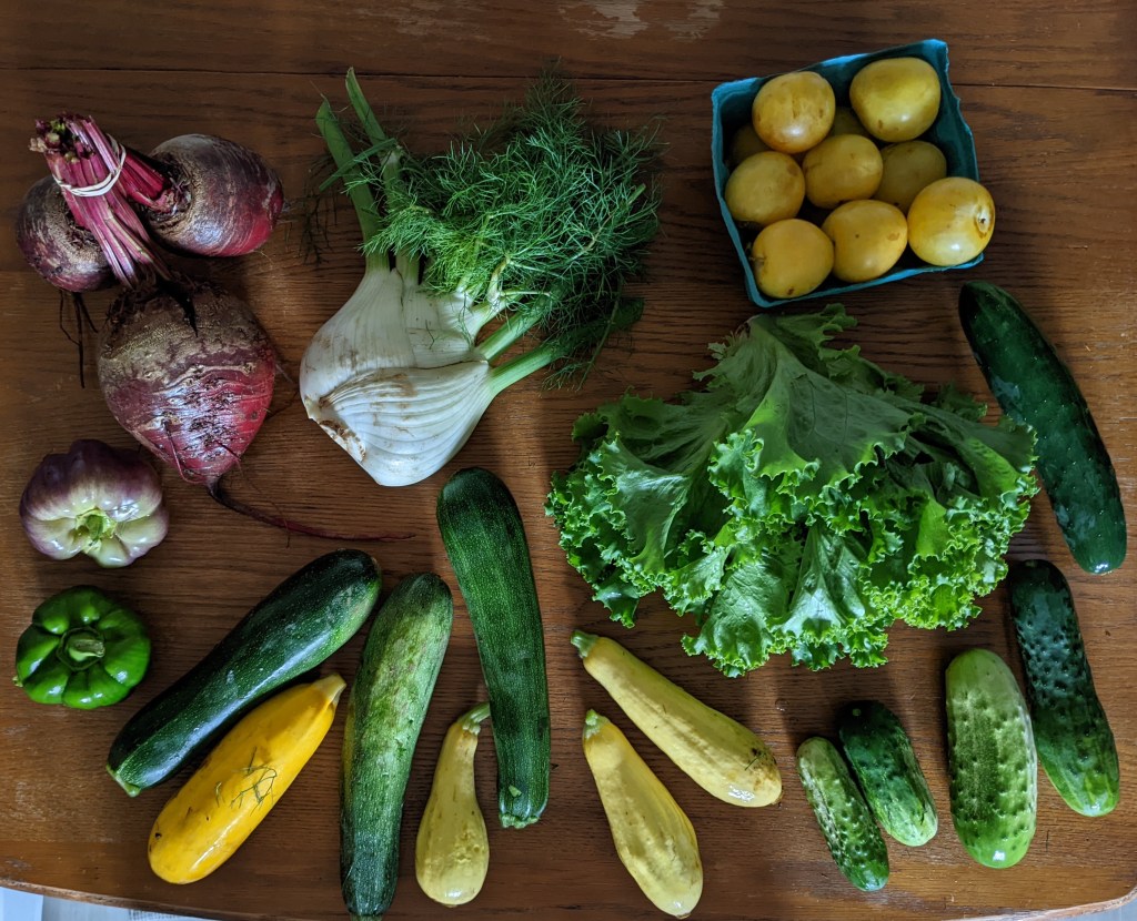 A beautiful week for summer produce. I think we have another ratatouille (or some stewed vegetable something, at least), salad, just roasted beets with fennel, I guess, and maybe a cobbler? YUM.