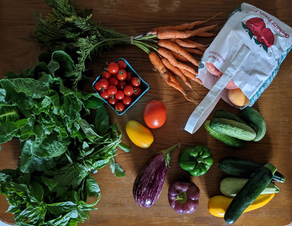 Wow! Honestly, this is so much food. And I still have the beets from last week. I’m thinking salad, maybe more ratatouille? Umm. Just eating it? Ha! I love summer produce; but it is abundant.