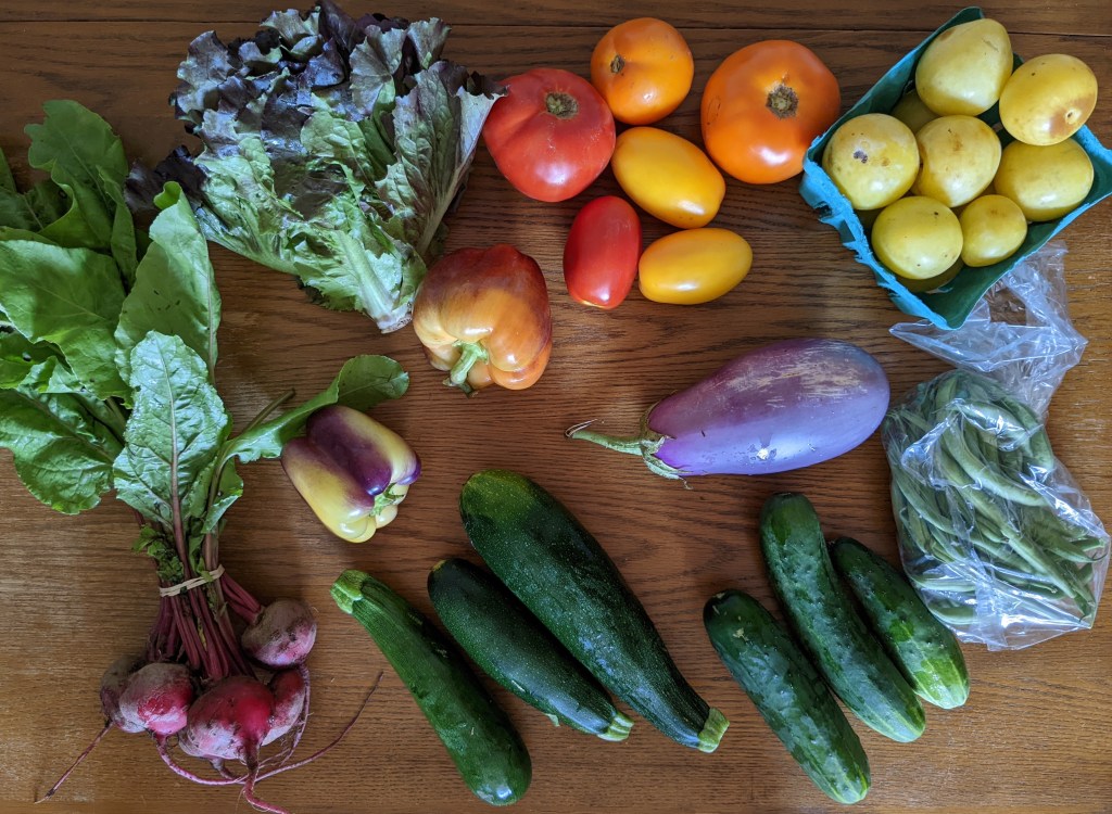 Another gorgeous summer haul. I ended up making a pasta bake with last week’s share. This week I might actually make that ratatouille and maybe my favorite dish from last year, this salad.