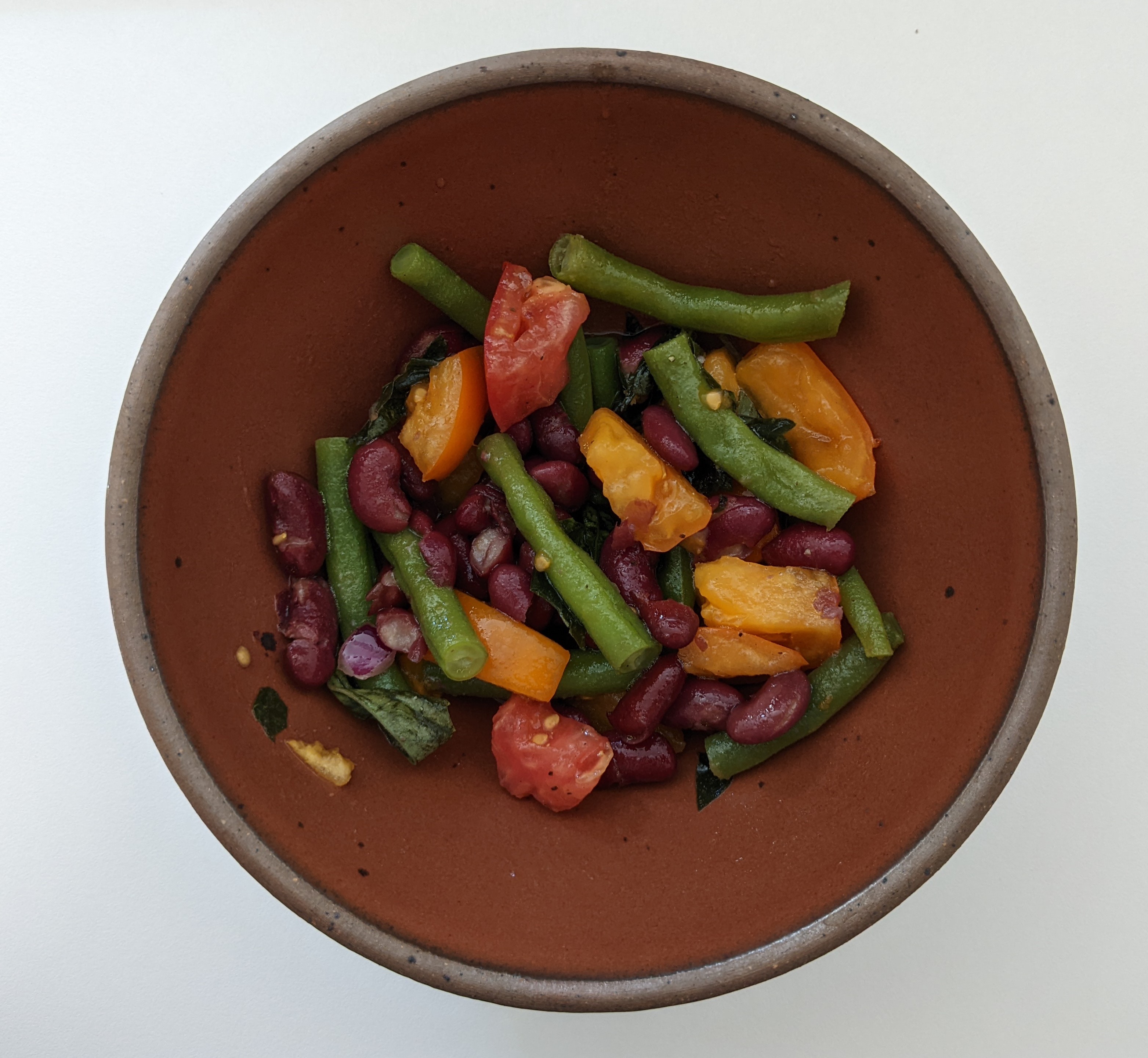 - My heirloom basil bean salad, with some blanched green beans (a perfect addition)