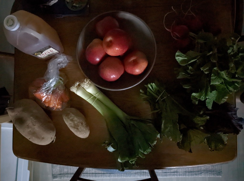 I just took a bite of these radishes. They’re perfect. Crisp, tart, and not too bitter. I think these might be great in some butter as a side. Honeycrisp cider is so good. It tastes like candy. A good week.