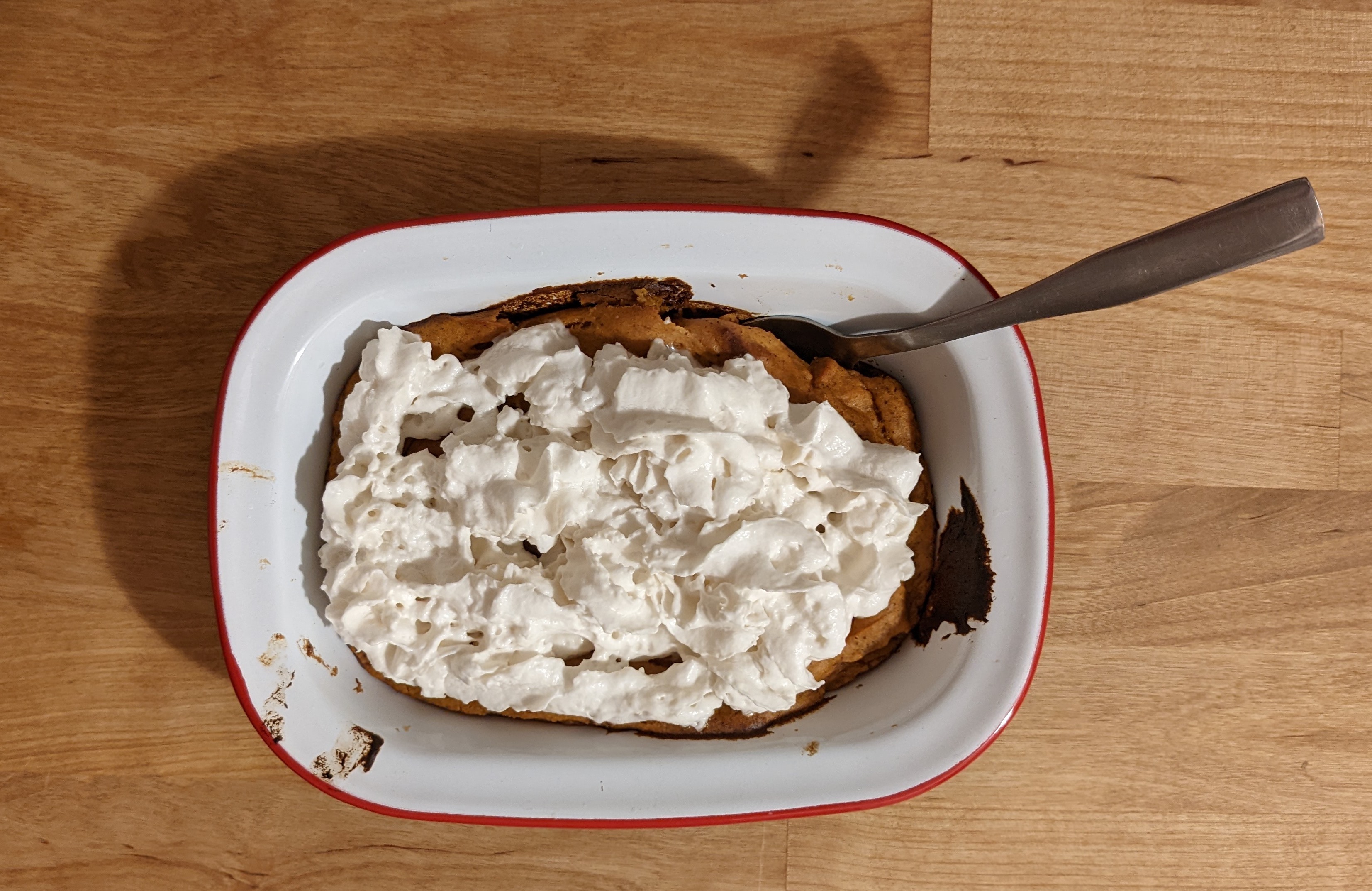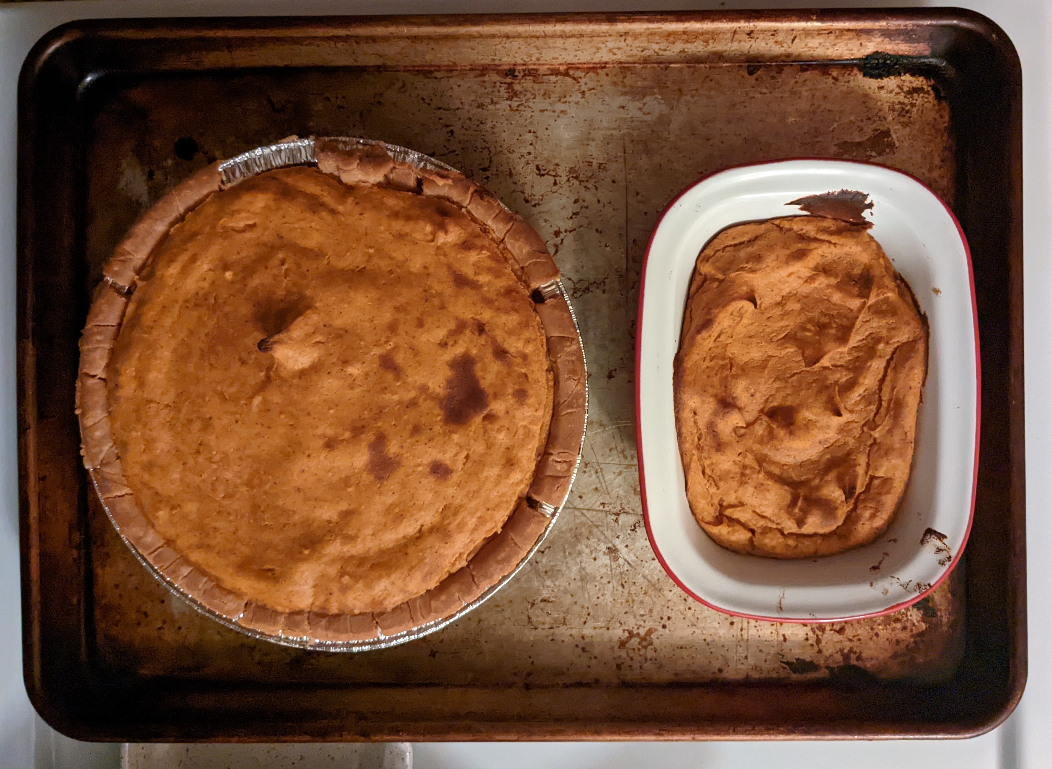 - Sweet potato pie with plenty of whipped cream (the recipe only called for 1 tbsp of sugar, which made for more of a savory soufflé than a dessert pie—I’d probably add a quarter cup in the future)